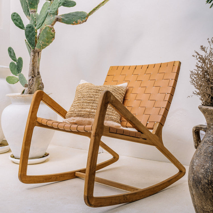 Solid teak wood frame relaxing / lounge chair with leather seat.