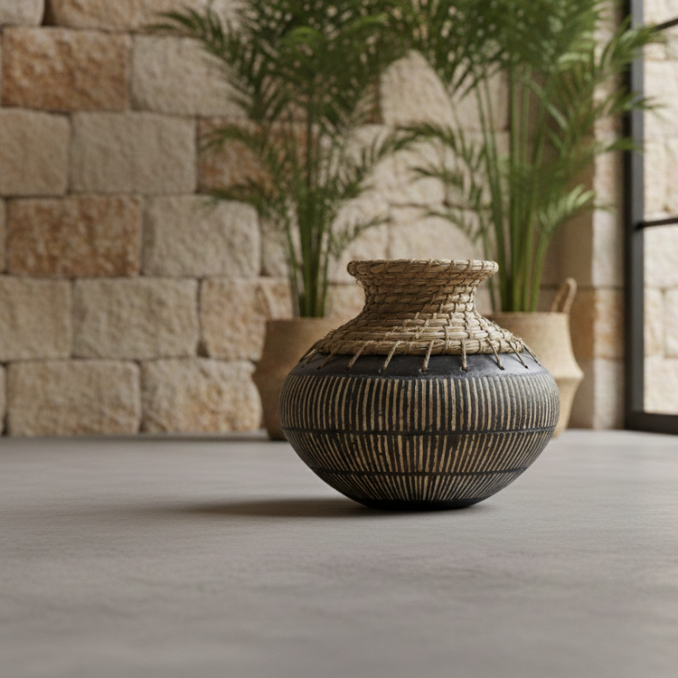 Add warmth and artisanal character to your interiors with our Luana handcrafted terracotta vase featuring intricate woven details. Designed to celebrate natural materials and traditional craftsmanship, this decorative vase blends earthy terracotta with an elegant woven overlay, creating a refined yet organic aesthetic.