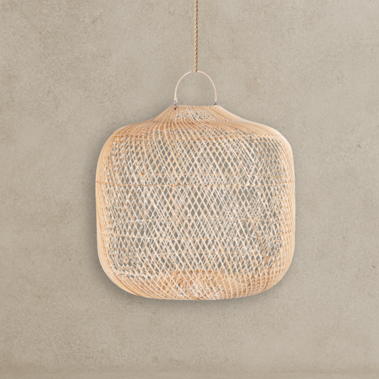 This Gorgeous hanging lamp is made of rattan and stretched over a metal frame, to create beautiful shapes and patterns with a simple design.