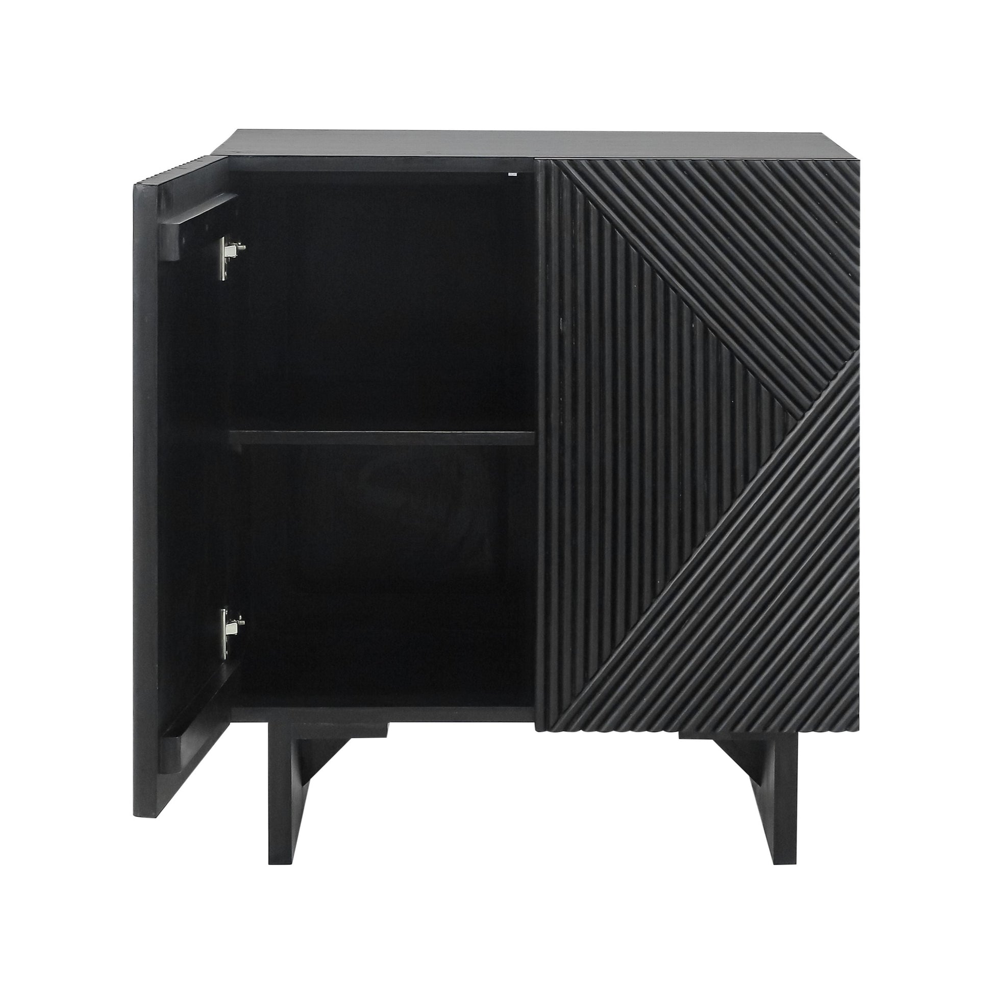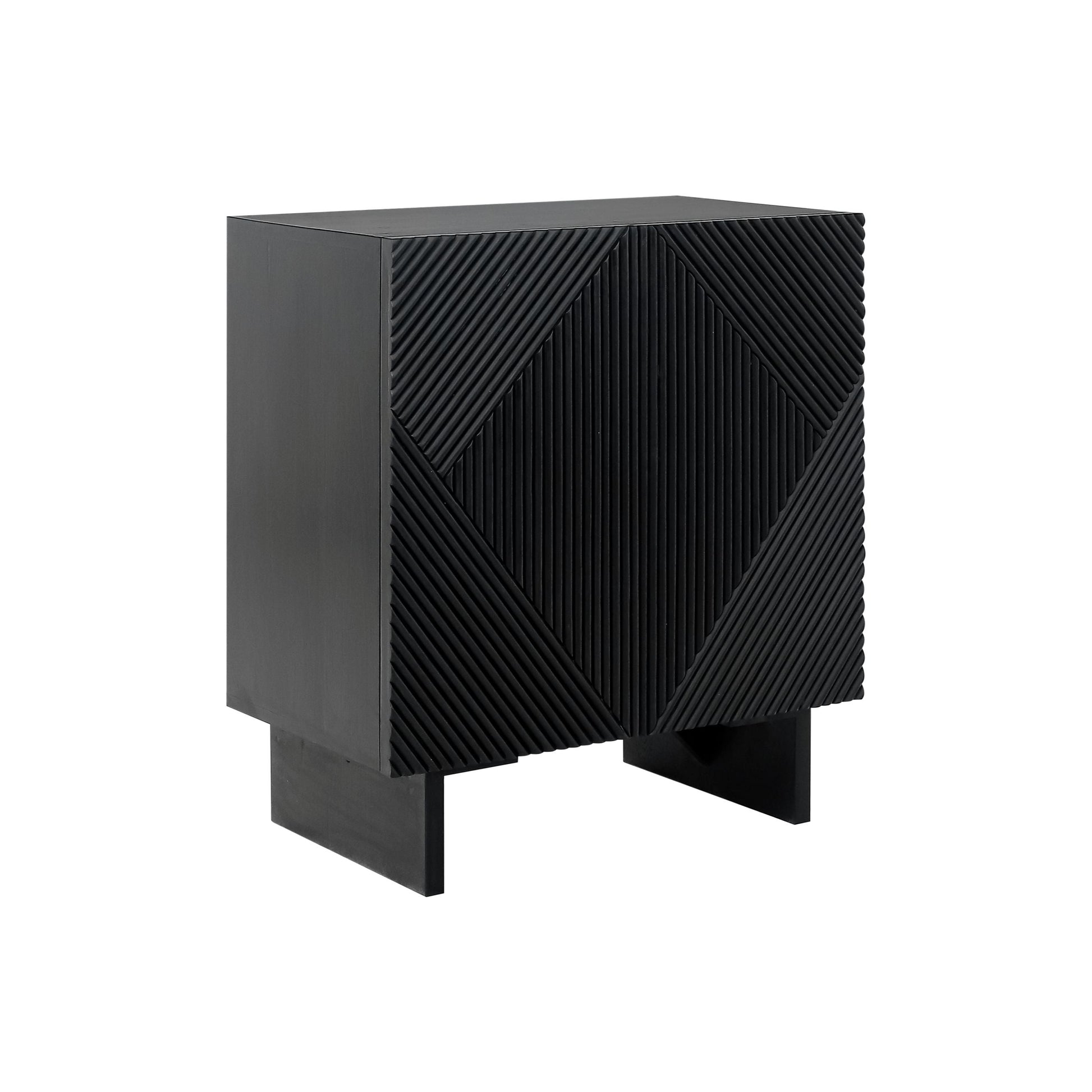 This 2-door cabinet features a sleek design with wooden slats pattern, adding texture and character to any room. It offers ample storage space while maintaining a clean, modern look. Perfect for organizing essentials in living rooms, dining areas, or hallways, this cabinet blends functionality with stylish craftsmanship.