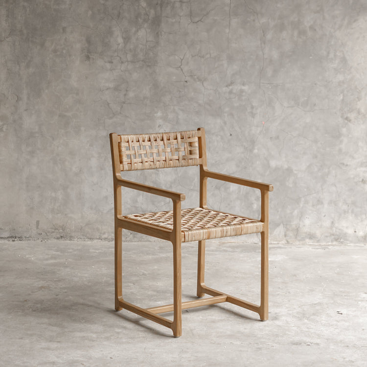 The Palmer Teak Wood Arm Chair is a handcrafted indoor dining arm chair made from solid teak wood and a handwoven natural fiber seat. Designed for dining tables and versatile everyday use, it offers a balance of structure, comfort, and organic texture—ideal for dining rooms, kitchens, and curated living spaces.