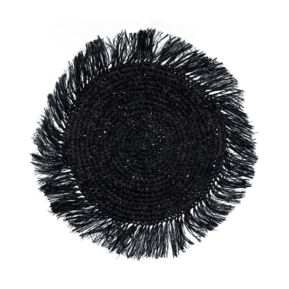 Elevate your dining experience with the Placemat Boho Round, expertly handwoven from natural fibers in a striking black hue. This round placemat combines artisanal craftsmanship with a sophisticated aesthetic, providing both protection for your table and a refined backdrop for your dinnerware. Its unique texture enhances any setting, adding subtle elegance and warmth to your table decor.