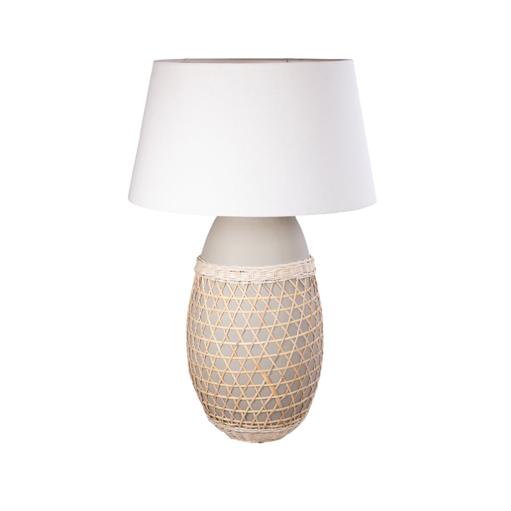 This gorgeous Table lamp or Bedside lamp is made of cement mix fiber over a metal frame to create beautiful shapes and patterns with a simple design.