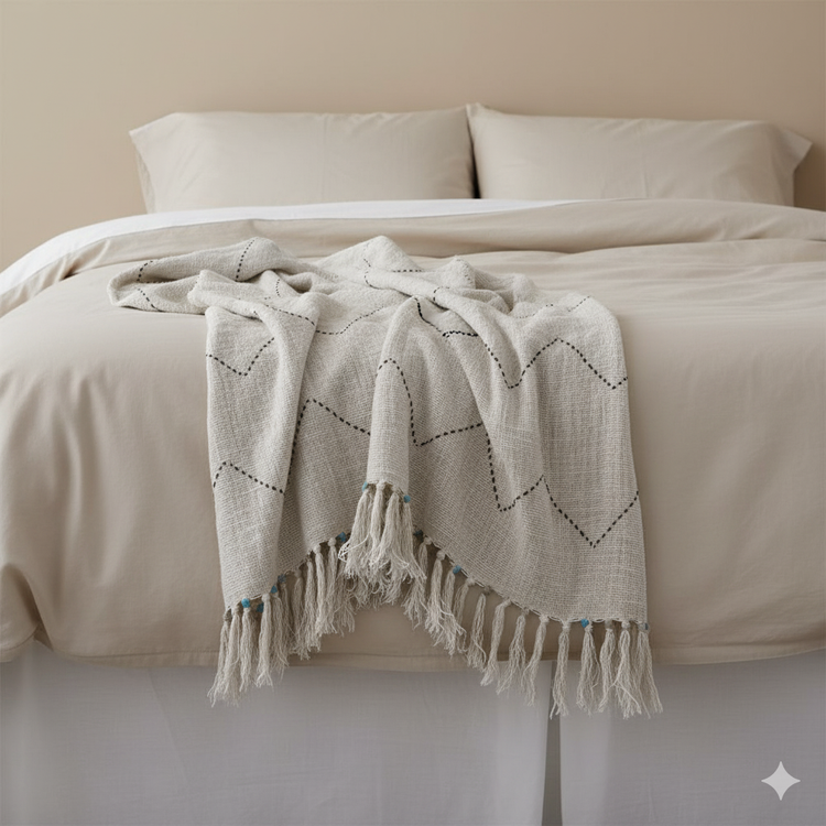 This Gorgeous cotton throw Amara Berber Natural is handwoven with a berber hand-stitched design.