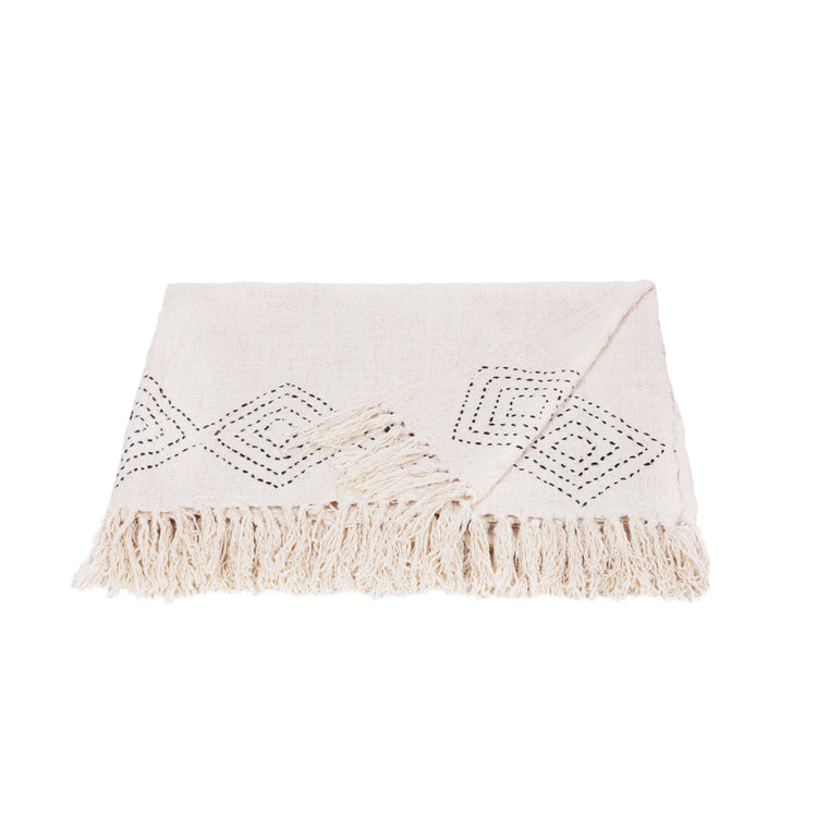 This gorgeous cotton Throw Mudclotch Print Black is handwoven raw cotton threads with a hand-stitch design.